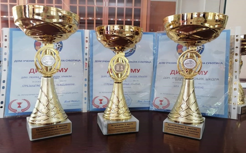Održani 26. Republički sportski susreti domova učenika srednjih škola Srbije. Dom učenika srednjih škola iz Subotice je bio domaćin ovogodišnje Republičke sportske domijade. Više od 350 učenika i vaspitača iz cele Srbije, a koji su prethodno ostvarili prva mesta na regionalnim domijadama, učestvovalo je ovoj manifestaciji. Učenici su se takmičili u fudbalu, košaraci, odbojci, stonom tenisu, šahu i streljaštvu - u muškoj i ženskoj konkurenciji. Pored takmičenja ono što ove susrete domova učenika čini posebnim je povezivanje i druženje učenika. Dom učenika srednjih škola ove godine je imao dosta brojnu ekipu od 16 učenika i četiri vaspitača. Predstavljali smo naš region - Zapadna Srbija u odbojci (dečaci), šahu - (ekipno dečaci), streljaštvu (ekipno dečaci i pojedinačno devojke) kao i stonom tenisu (devojke pojedinačno). Vratili smo se sa tri pehara (dečaci u streljaštvu ekipno drugo mesto, učenik Novak Jovanović drugo mesto streljaštvo pojedinačno kao i šah dečaci ekipno treće mesto) kao i puni lepih utisaka i novih poznanstava. Sve čestitke našim učenicima na postignutim rezultatima ali pre svega na dostojnom reprezentovanju kako našeg doma tako i regiona Zapadna Srbija. Zahvaljujemo se organizatoru, Domu učenika srednjih škola iz Subotice na odlično organizovanim susretima.